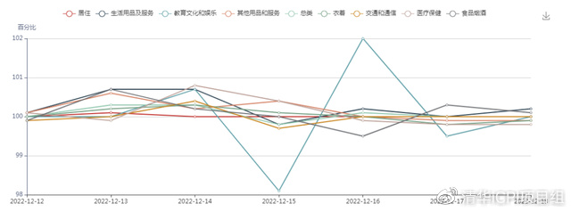 本周各大类日指数波动幅度较大。教育文化和娱乐大类在12月16日涨幅达2.0%,下设小类教育服务在12月16日涨幅最大达到3.6%。