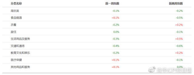 本周交通和通信大类周指数延续上周跌势(-0.6%)环比下降0.4%。中类层面,交通中类呈现0.5%的周环比跌幅,通信中类周环比下跌0.3%。