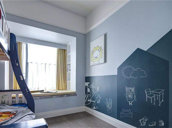 一般来说,家里各个空间墙面装修的选择范围比较广泛,比如说乳胶漆、墙纸、墙布、护墙板、硅藻泥、瓷砖、大理石等。很多时候,儿童房墙面材料,首选环保等级高的水性乳胶漆。毕竟,相较于其他材料,乳胶漆的综合性价比更高。硅藻泥虽然在环保上表现不错,然而却存在一个缺陷——一旦受到些许损坏,就无法修复,要重新涂刷,整体成本较高。瓷砖、大理石等石材类虽无环保问题,但给人一种冷冰冰的感觉,不适合儿童房。墙纸、墙布和护墙板等材料,都存在着一定的环保超标隐患,使用频率不高。因而,乳胶漆更适合儿童房墙面。