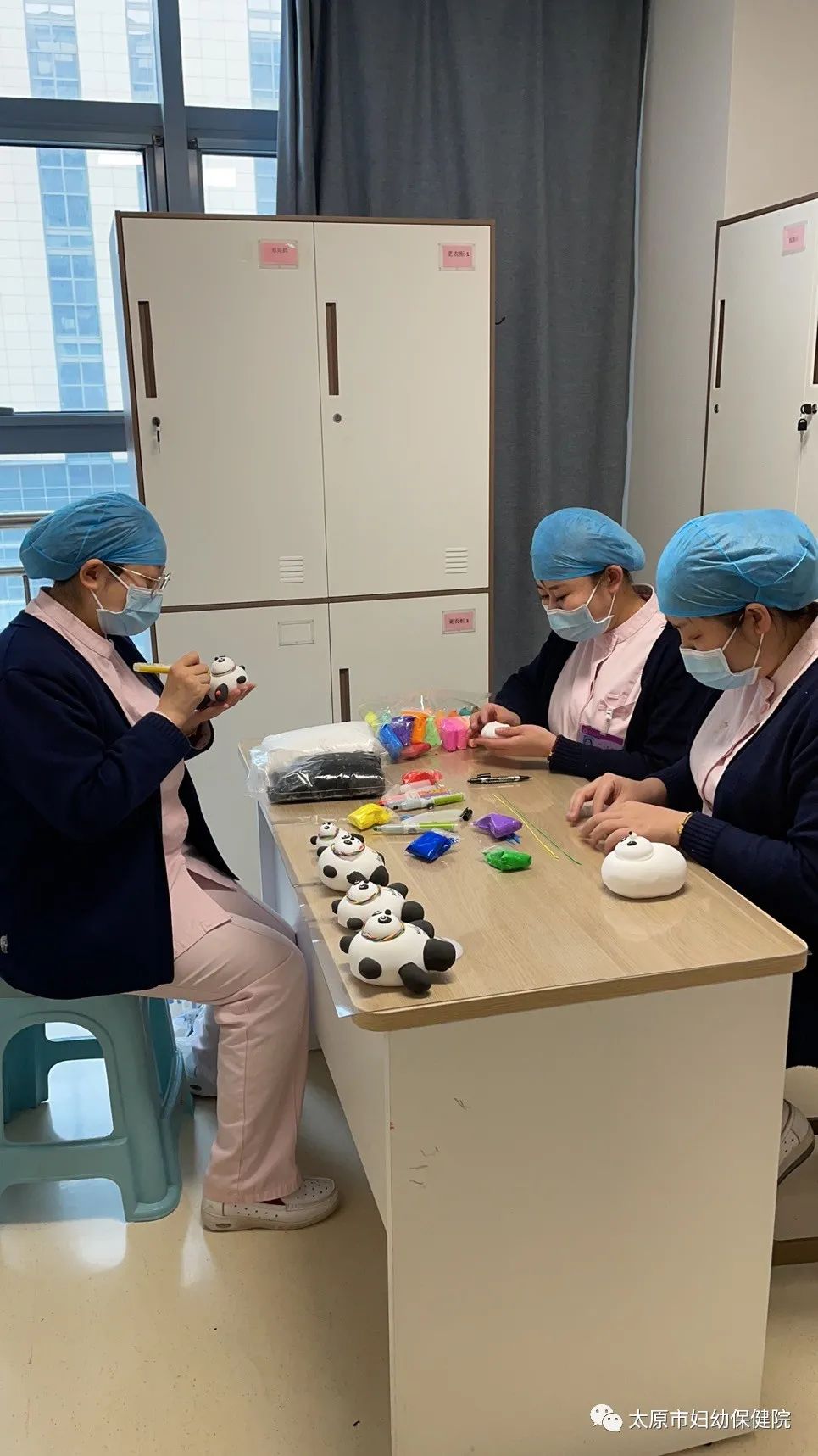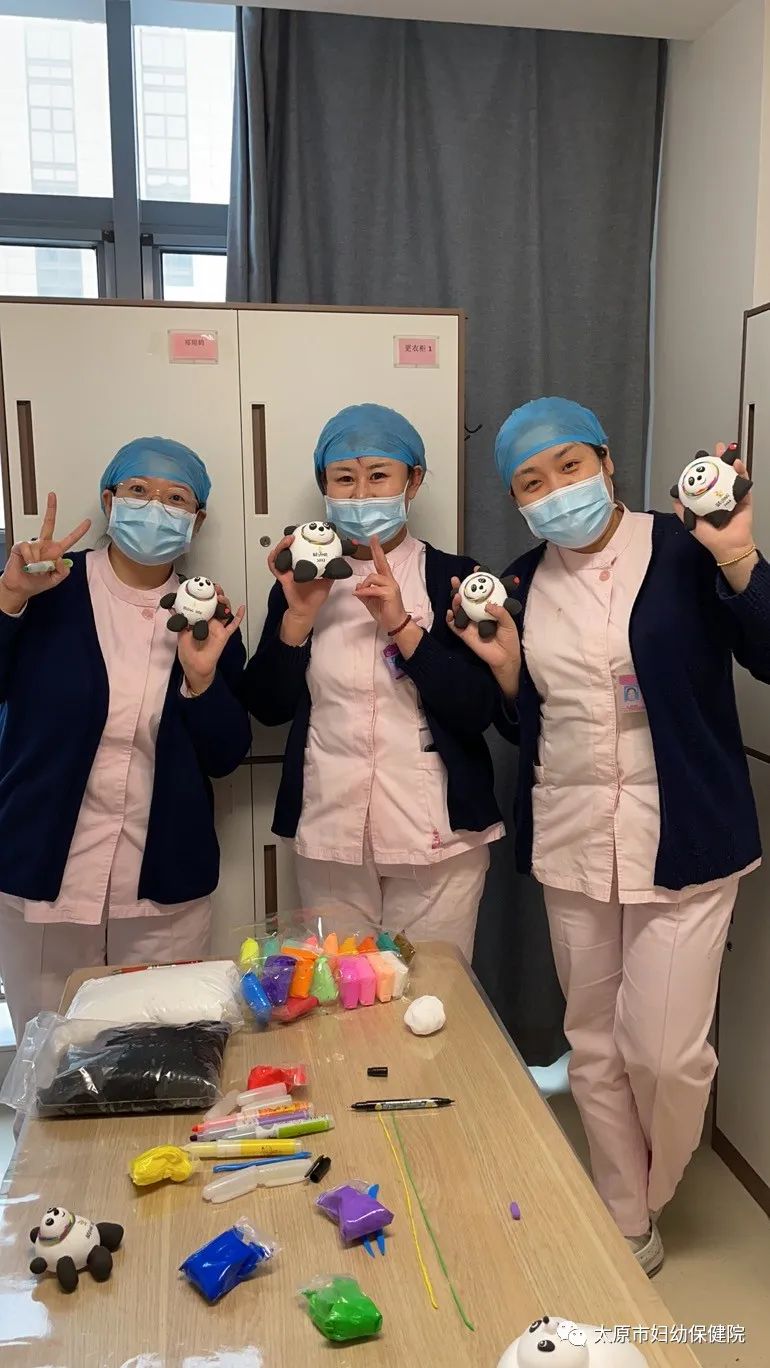 护士姑娘们利用休息时间,自己购买软陶泥、竹签、彩笔等材料,发挥各自所长,捏出“冰墩墩”,只见红、白、黄、黑色轻黏土在他们的手中灵活舞动、交替变幻,不一会儿,五彩黏土就变成了一个个憨态可掬、惹人喜爱的2022年北京冬奥会吉样物“冰墩墩”,看着手中的作品,大家脸上露出了开心的笑容。