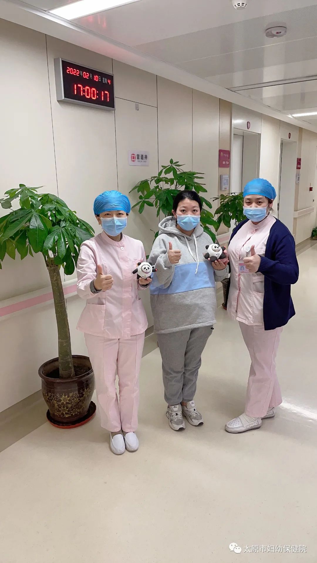 产科副护士长韩蕾、护士孔宪雅亲手将精心制作的冰墩墩送到产妇手中,收到精美的礼物后,产妇高兴的说:“哇,‘顶流’冰墩墩来到我们身边啦!这个冰墩墩给我们送来了惊喜和快乐,我们一起为冬奥会加油喝彩,祝福‘双奥之城’北京好运!”