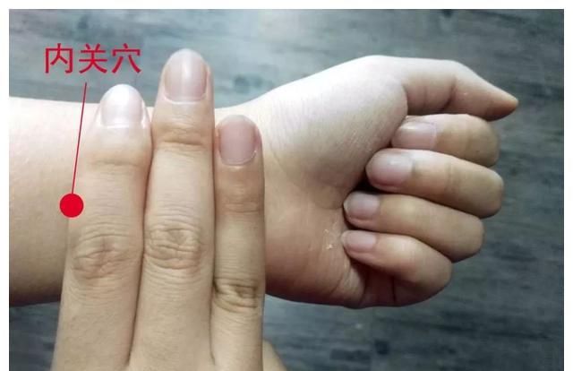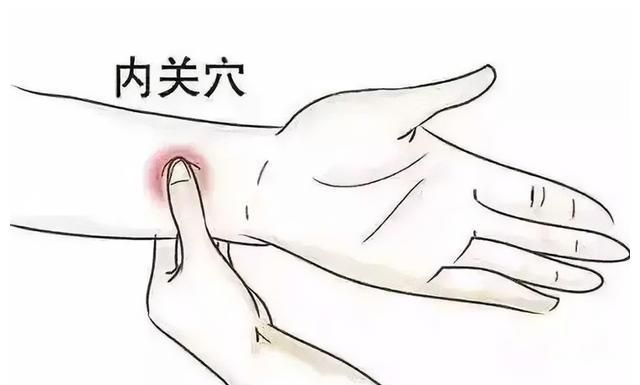 ,在病人突发心脏病时,先让病人平躺,在等待急救期间,配合按揉内关穴可起到缓解疼痛的效果。