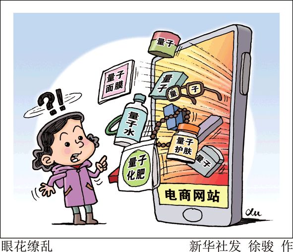 ▧ “搭车”高科技收取“智商税”。一家生物科技有限公司近日在其公司网站宣传称,其生产上市的“量子酒”通过量子技术提高震动频率,增强健康因子能量,具有酒疗功效。中国科技大学科技传播系副教授吴琦来指出,有关部门曾专门辟谣,市场上各类“量子产品”,均已被证实并不可靠,但量子水、量子肥料、量子按摩、量子鞋垫、量子药等产品仍屡见不鲜。