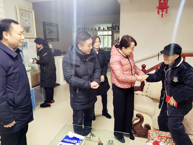 怀化市妇幼保健院党委书记覃琴、副院长周永来、副院长蒋富香、纪委书记田晶分别慰问了医院困难党员曹丽群、杨水发、向欢平等同志。每到一处,院领导代表党组织向慰问对象致以新春的祝福,并与他们进行亲切深入的交谈,详细的了解他们的生活情况和身体状况,认真听取他们的困难。新一轮雨雪低温天气即将来临,院领导再三叮嘱身体患病的党员们注意御寒保暖,在生活上有什么困难一定要第一时间告诉组织,组织是你们坚强的后盾。第二支部书记尚国庆、委员易珊把支部筹集的捐款送到了患癌党员向欢平同志手中,并鼓励他一定要保持乐观积极的心态,配合好医生的治疗,战胜疾病早日康复,家里的事就是我们大家的事,需要帮助的就告诉我们。