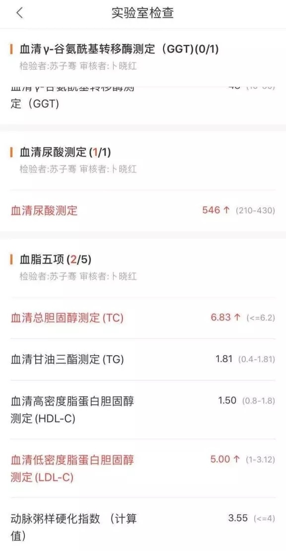 几天后,张先生到医院进行血脂五项检查,检测结果显示:血清低密度脂蛋白胆固醇LDL升高,血清总胆固醇TC升高。