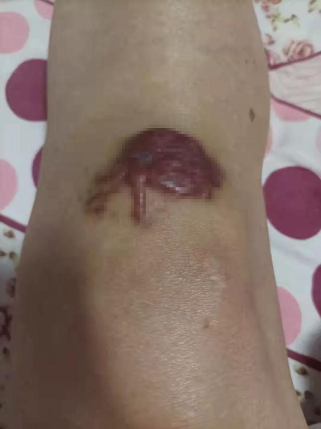 原来,5个月前,陶某某因为不慎摔倒,右膝皮肤蹭破了一块,瘢痕倒是愈合了,但随后瘢痕呈进行性增大,还长出了几条像螃蟹脚一样的东西,严重影响了生活。