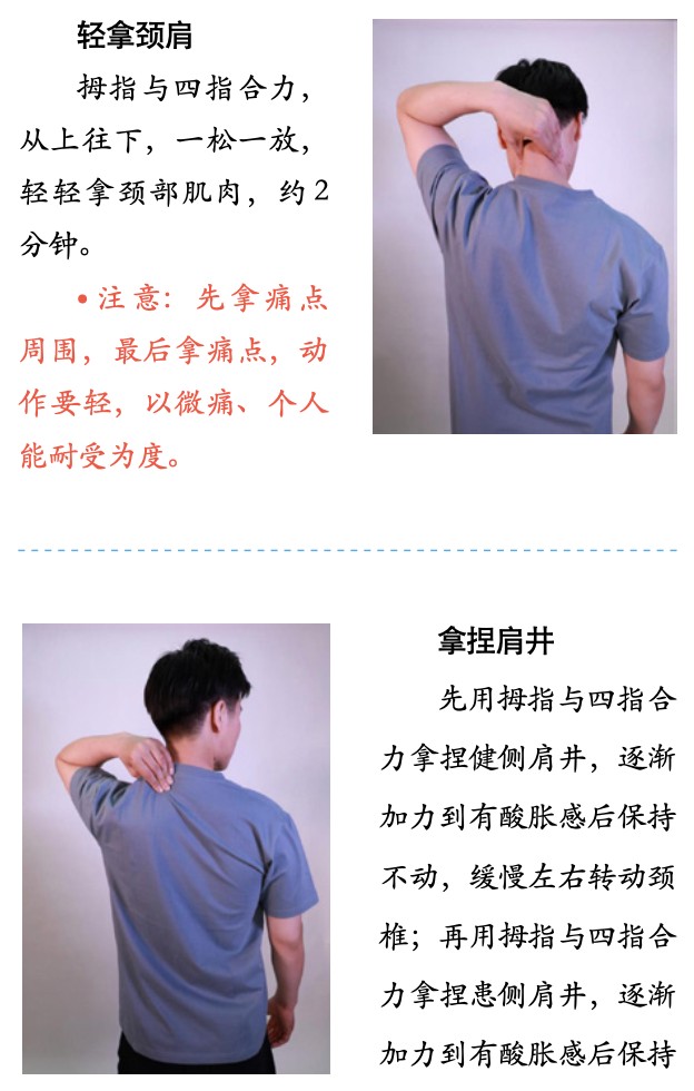 对于肩颈不适者,可通过自我按摩配合热敷一起帮助缓解不适的症状。