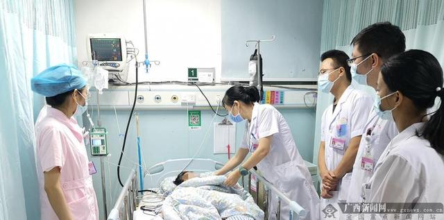 广西妇幼保健院孕产保健部主任兼新阳产房主任龙俊青(右4)正在进行查房。广西新闻网通讯员 文俊骁 供图